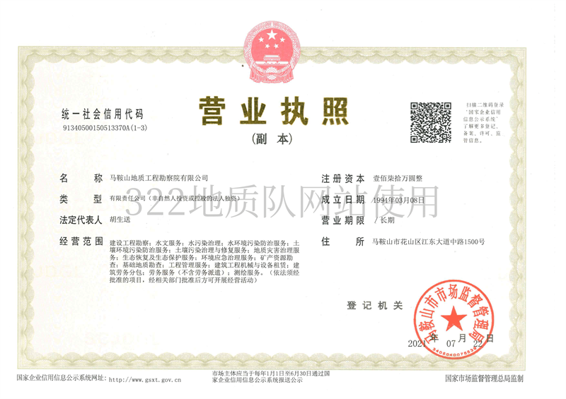 • 馬鞍山工程勘察院有限公司營業執照